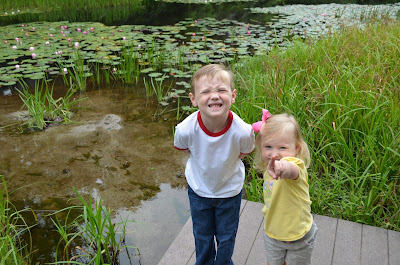 We ate dinner in town on Friday night outside. It really was chilly! I can't believe the weather! The kids got up and danced to some live music while we enjoyed dinner! Saturday morning we got up and just took it easy, drank coffee, made some breakfast and played! We took the kids to the Nature Center in Highlands and it was really great! It was small but had so many things for them to look at and touch! Both kids got to pet Shelly the turtle! Jack LOVED the microscope slides. He went through all of them multiple times. Lucy loved the puzzles and putting her hands in the holes to feel what was inside! There were lots of trails outside in the botanical gardens! Jack was our trail leader and it was so fun! The trails were a good distance for the kids to walk and had lots to look at along the way! It really felt like we were deep in the woods! Jack pretended that we had to find out way back! Lucy hung in there for the walking and had fun too!